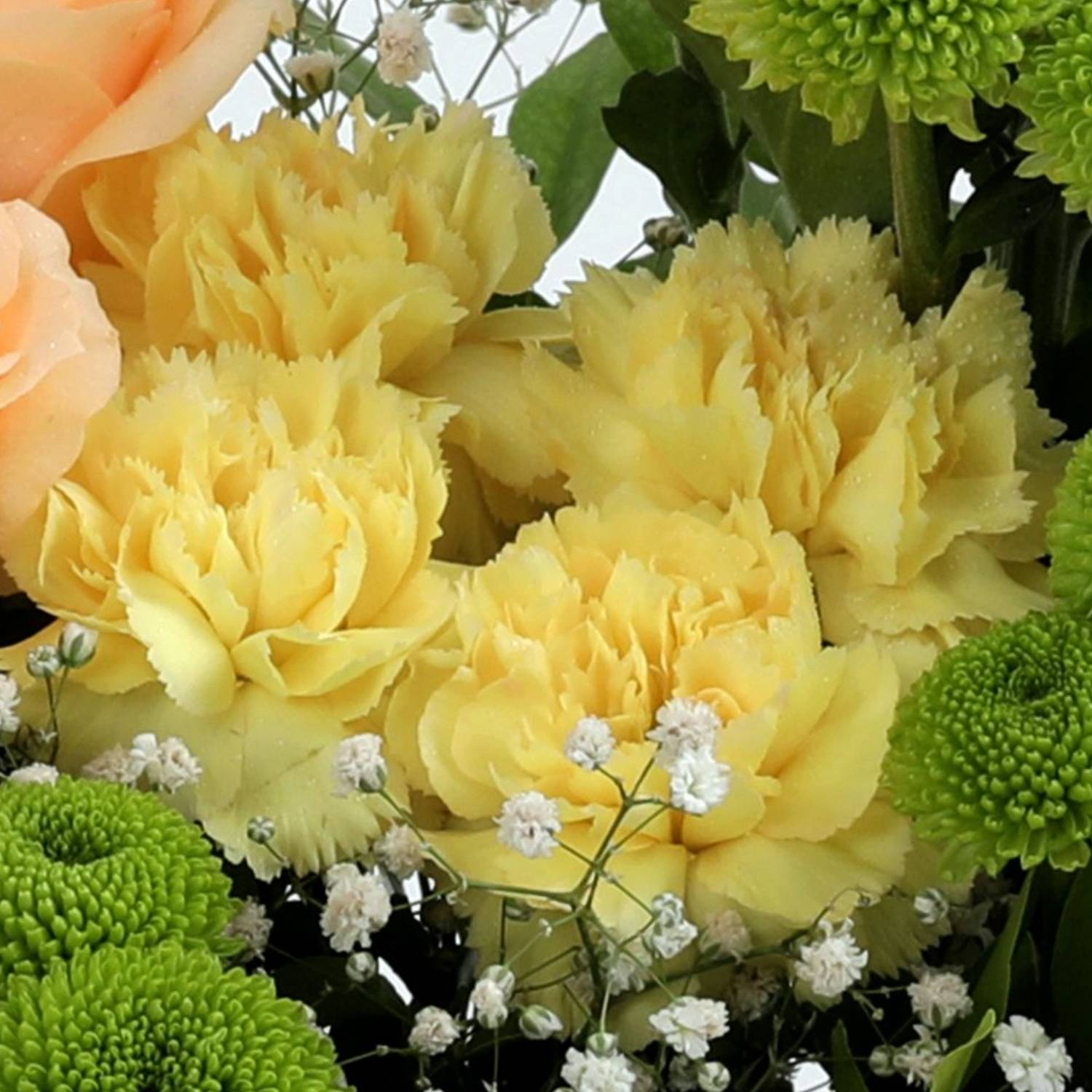 Add a pop of color to your home or office with our vibrant bouquet of chrysanthemums and baby's breath in assorted colors. This bouquet is perfect for gifting to a friend or loved one to brighten up their day and show that you care.