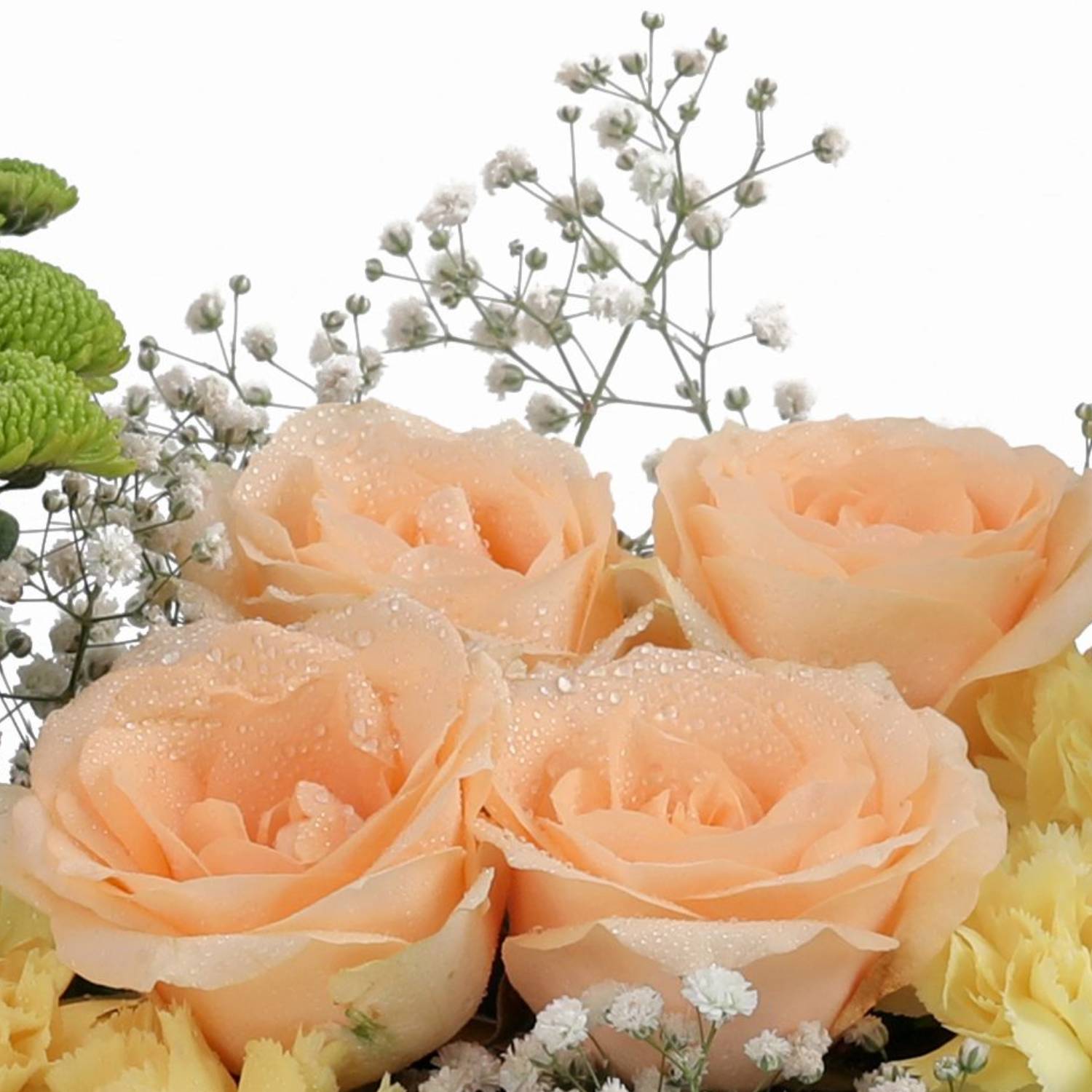 Add a pop of color to your home or office with our vibrant bouquet of chrysanthemums and baby's breath in assorted colors. This bouquet is perfect for gifting to a friend or loved one to brighten up their day and show that you care.